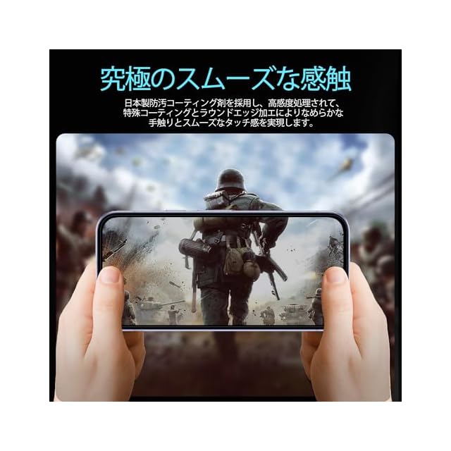 【指紋防止、高感度タッチ】ガラスフィルムには撥油コーティングが施されており、指紋や汚れなどに強くなめらかな操作感を実現、付着した汚れなどは簡単に拭きとれます。こちらは高耐久撥油コーティングが施され、つるつるな滑り感を実現!ゲームしても渋くなし!