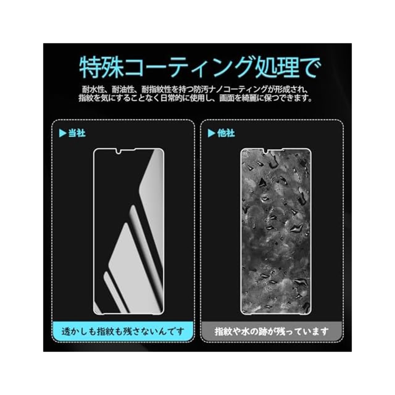 【指紋防止、高感度タッチ】xperia 10 vi ガラスフィルム には撥油コーティングが施されており、指紋や汚れなどに強くなめらかな操作感を実現、付着した汚れなどは簡単に拭きとれます。こちらは高耐久撥油コーティングが施され、つるつるな滑り感を実現!ゲームしても渋くなし!
