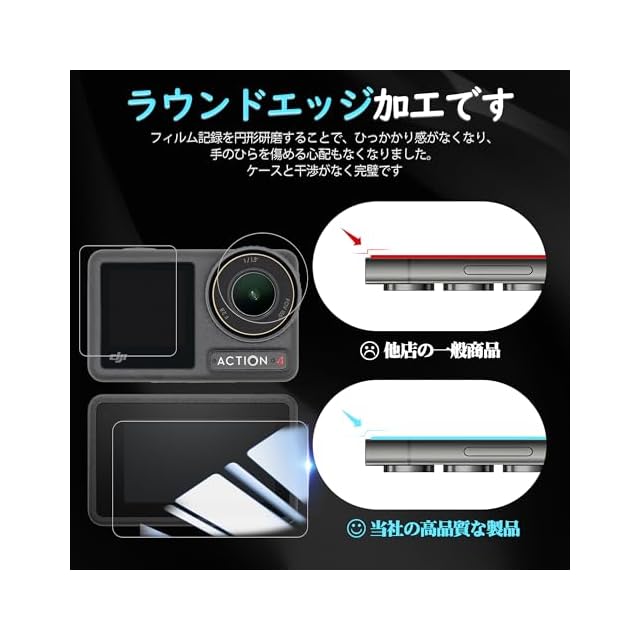【対応機種】 DJI Osmo Action 4 ガラスフィルム2枚 。【注意】この電話の画面の端は湾曲しているため、保護フィルムのサイズが丁度良い場合、しっかりと貼り付けられず、白いエッジやシェルとの干渉などの問題があるため、保護フィルムは画面よりも小さいです。