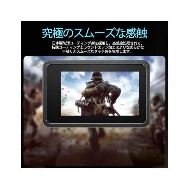 【指紋防止、高感度タッチ】ガラスフィルムには撥油コーティングが施されており、指紋や汚れなどに強くなめらかな操作感を実現、付着した汚れなどは簡単に拭きとれます。こちらは高耐久撥油コーティングが施され、つるつるな滑り感を実現!ゲームしても渋くなし!