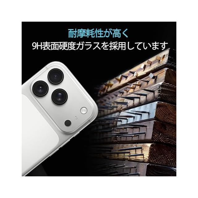【9H硬度・日本製ガラス素材】いphone 17 pro max カメラ保護 用 日本旭硝子製ガラス素材採用 最上級強度のガラスを使用し表面硬度は9H。万が一スマホを落としてガラスが割れても、 ガラス破片が飛び散らないような安心設計。 飛散防止 、ガラス破片から守ります。