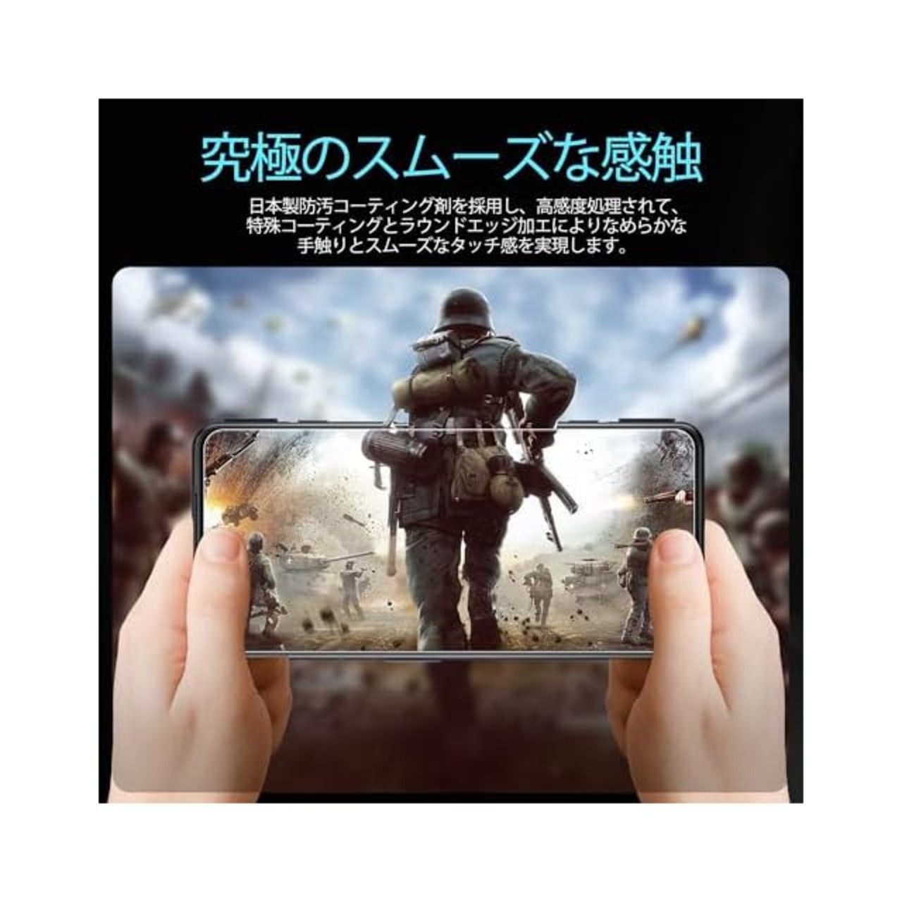 【指紋防止、高感度タッチ】ガラスフィルムには撥油コーティングが施されており、指紋や汚れなどに強くなめらかな操作感を実現、付着した汚れなどは簡単に拭きとれます。こちらは高耐久撥油コーティングが施され、つるつるな滑り感を実現!ゲームしても渋くなし!