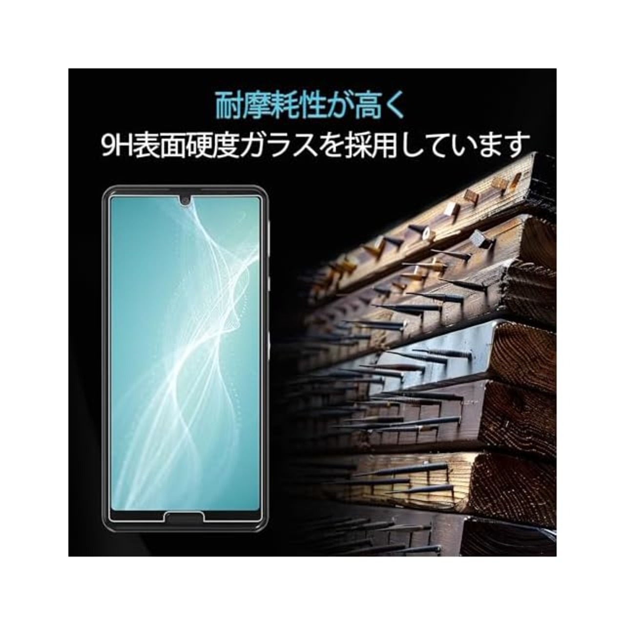 【9H硬度・日本製ガラス素材】日本旭硝子製ガラス素材採用 最上級強度のガラスを使用し表面硬度は9H。万が一スマホを落としてガラスが割れても、 ガラス破片が飛び散らないような安心設計。 飛散防止 、ガラス破片から守ります。