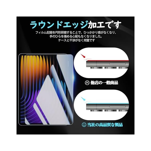 【対応機種】Xiaomi Pad 7 / Pad 7 Pro ガラスフィルム2枚 。【注意】この電話の画面の端は湾曲しているため、保護フィルムのサイズが丁度良い場合、しっかりと貼り付けられず、白いエッジやシェルとの干渉などの問題があるため、保護フィルムは画面よりも小さいです。