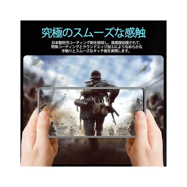【指紋防止、高感度タッチ】ガラスフィルムには撥油コーティングが施されており、指紋や汚れなどに強くなめらかな操作感を実現、付着した汚れなどは簡単に拭きとれます。こちらは高耐久撥油コーティングが施され、つるつるな滑り感を実現!ゲームしても渋くなし!