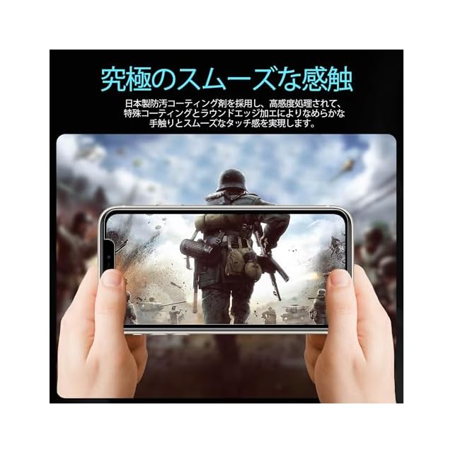 【指紋防止、高感度タッチ】ガラスフィルムには撥油コーティングが施されており、指紋や汚れなどに強くなめらかな操作感を実現、付着した汚れなどは簡単に拭きとれます。こちらは高耐久撥油コーティングが施され、つるつるな滑り感を実現!ゲームしても渋くなし!