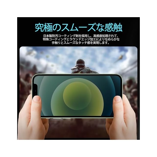 【指紋防止、高感度タッチ】ガラスフィルムには撥油コーティングが施されており、指紋や汚れなどに強くなめらかな操作感を実現、付着した汚れなどは簡単に拭きとれます。こちらは高耐久撥油コーティングが施され、つるつるな滑り感を実現!ゲームしても渋くなし!