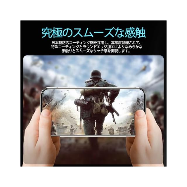 【指紋防止、高感度タッチ】ガラスフィルムには撥油コーティングが施されており、指紋や汚れなどに強くなめらかな操作感を実現、付着した汚れなどは簡単に拭きとれます。こちらは高耐久撥油コーティングが施され、つるつるな滑り感を実現!ゲームしても渋くなし!