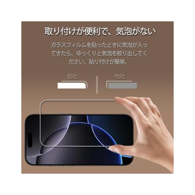 【 に適合する iphone 16 pro ガラスフィルム よくある問題】<br/> 1. 貼り付けた後、ホコリが入っる場合はどうすればいいでしょうか?<br/> 強化ガラスを割れないように一気に剥がした後に、セロハンテープや同梱のラベルシートでホコリを取り除き再度丁寧に位置を合わせながら貼って下さい。<br/> 2. 気泡が1円玉サイズで残った場合はどうすればいいでしょうか?<br/> 画面を擦っても圧着出来ない場合が多いので、 この場合は、じわじわと剥がして、 再度貼り付けるとキレイになります。<br/> 位置のズレやほこりなどが入っておらず、気泡が抜け切らない場合は貼りなおさずに1週間ほど放置していただきますと自然になくなります。<br/>
