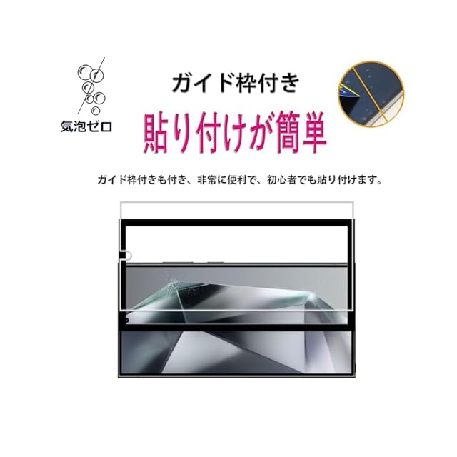 【気泡防止・貼付け簡単】気泡防止加工が施されているので、気泡が入りにくい。万が一気泡が入ってしまっても時間が経てば徐々に抜けるので 美しい仕上がりに。ガラスを液晶に置くだけで自然に吸着、簡単に気泡が抜いて行くので、誰でも簡単、綺麗に貼ることができます。フィルム貼りことが苦手の方でも簡単に貼る事が可能です。