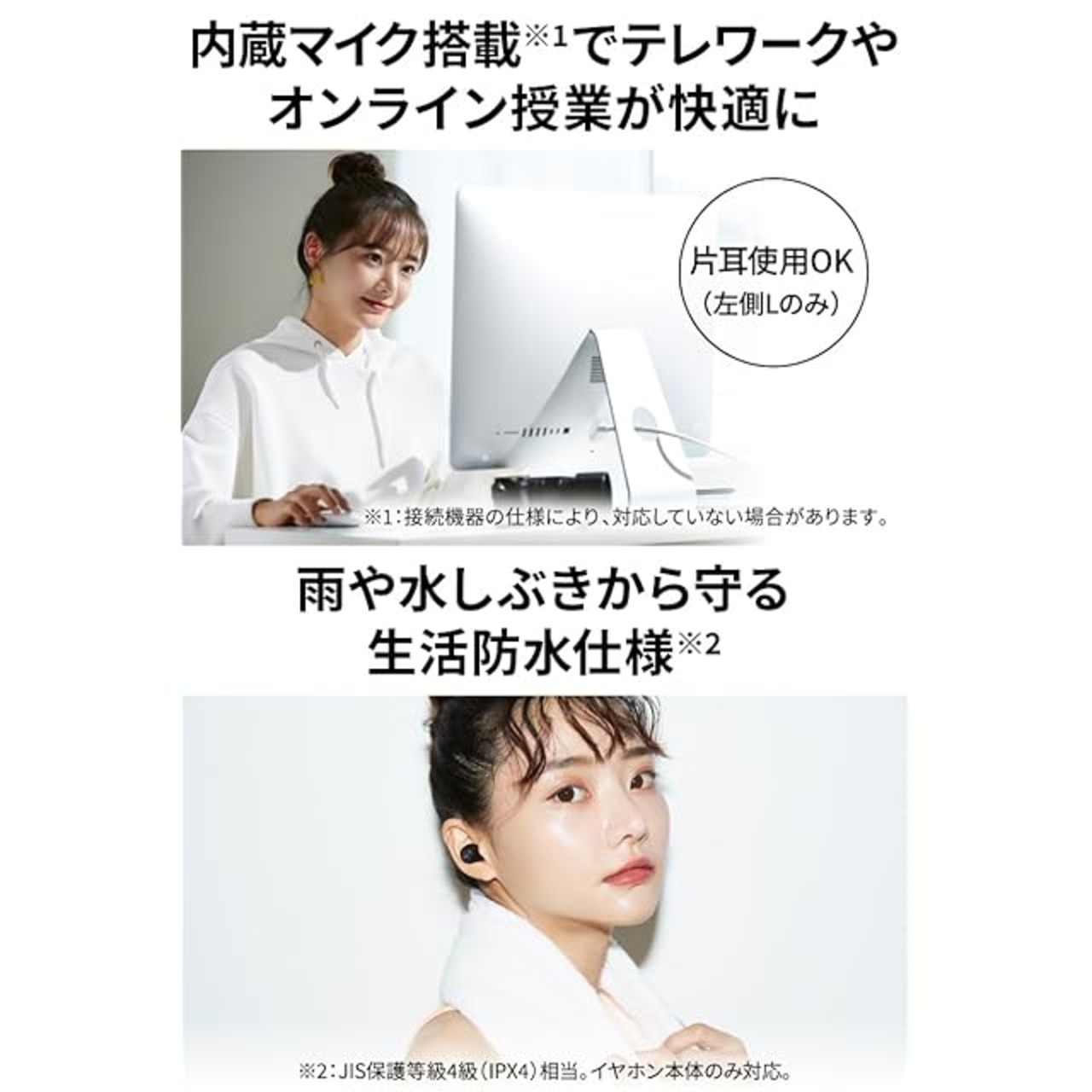 雨や水しぶきを気にせず使える生活防水仕様※2 ※2:JIS保護等級4級(IPX4)相当。イヤホン本体のみ対応。