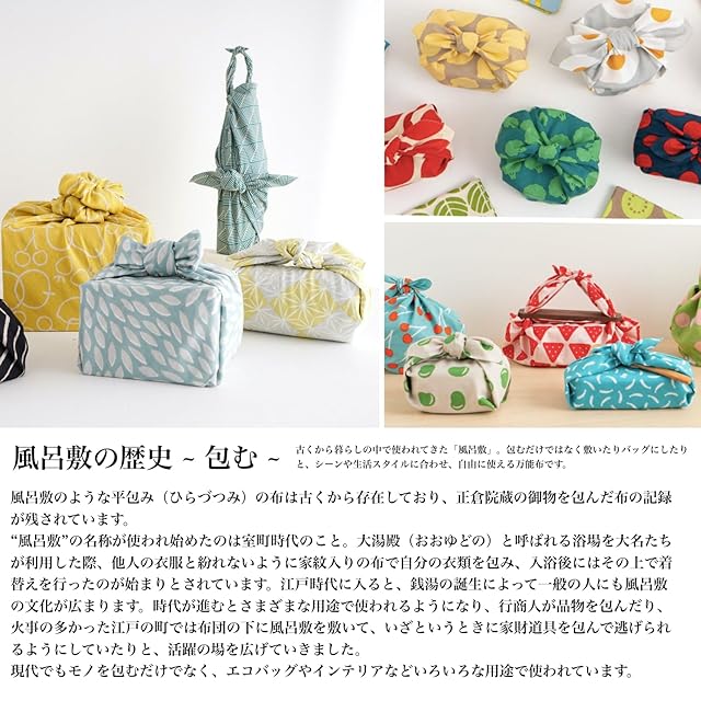 奈良時代より受け継がれてきた「包む」文化、そしてそのツールである「風呂敷」。 身の回りのいろいろな品を包む融通性に富んだ万能布、風呂敷は、包む・敷く・覆うなど、さまざまな使い方が。 あなたの日常に風呂敷を取り入れてみてはいかがでしょうか。