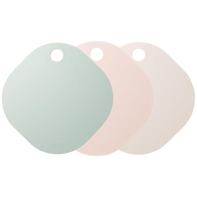 アンドエヌイー(&NE) カッティングボード nikii グリーン ピンク ベージュ 3枚セット 幅18.5cm×奥行き18.5cm×厚さ0.3cm まな板 日本製 食洗機対応 抗菌 小さい ミニまな板 丸 四角 フック付き おしゃれ 使い分け NIK-188-GPB