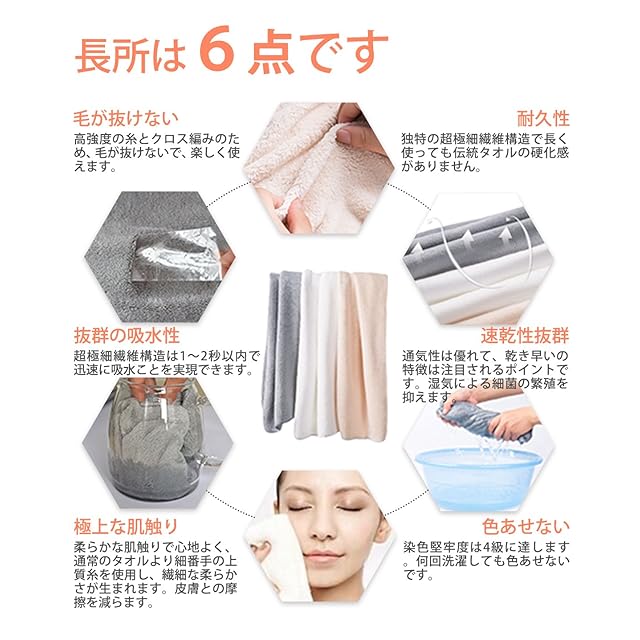 【コスパが良い】 極細繊維で丁寧に織り上げた高品質です。糸の靭性が強くて使用寿命は普通のタオルの4倍以上です。何回洗濯しても変形しません。抗菌防臭はできます。普通なタオルは3~4ヶ月で交換する必要がありますが、これを長く使うことができます。コスパがもっと高いです。