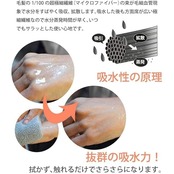 【拭かず、触れるだけでさらさらになる】毛髪の1/100の超極細繊維(マイクロファイバー)の束が毛細血管現象で水分をすばやく吸収、拡散します。拭かず、触れるだけでさらさらになります。