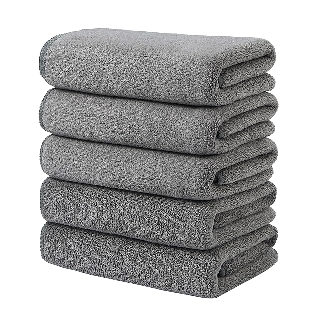Oseamaid バスタオル 大判 5枚セット マイクロファイバー タオル 吸水速乾抗菌防臭 (ミディアムグレー)