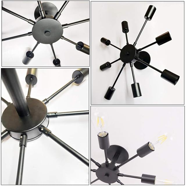 【金属制の本体】ペンダントライトは高品質の金属で作られている、シンプルな黒工業風、お値段以上の幸福感をきっともたらしてくれます。サイズ:約53×43×18cm「定格電圧」85-250V「重量」約1.3kg。 電球対応:E26(電球は付属しません)日本説明書付き。</br>【工業風】ペンダントライト8灯は外観と内側も黒色で、北欧風、ファッションの復古、現代の工業というこの感じです!室内にアンティークな雰囲気を醸し出します。照明としてだけではなくお部屋のインテリアとしても活躍しそうです。天井照明をオシャレなデザイン照明に変えるだけで、お部屋の雰囲気はグッと変わります。さらにスタンドライトなどの補助照明を足すことで「多灯照明」に!一つペンダントライトだけで十分です。</br>【広い光が感じ】壁を照らしたり、直下を照らしたり、光を散らばせることにより陰影が生まれ、オシャレな空間を演出することができるのです。明るい光線は清潔感のある印象で、お部屋のテイストを選ばずお使いになれます。北欧系などのモダンなインテリアにもピッタリです。リビングだけでなく、ダイニングや寝室にも良いですね。</br>【幅広い範囲に適用】ペンダントライト8灯はお部屋に観賞性や高級感を添えます。リビング・ダイニング・カフェ・店舗・ホテルの部屋・喫茶店など様々な場所にふさわしくて、いい雰囲気を演出します。</br>【簡単な取り付け】ペンダントライト8灯は引掛けシーリング式なので、取り付けは非常に便利で、工事不要、女性一人でも取り付けられます。★★★ご注意:感電の恐れがありますので、取付・取り外す前に必ず部屋の主電源のブレーキを下がってください!!!ご注意:傾斜のある天井、傾斜を合わせた舟底天井、凹凸のある天井ではご使用いただけません。必ず平らな天井に取り付けて下さい。