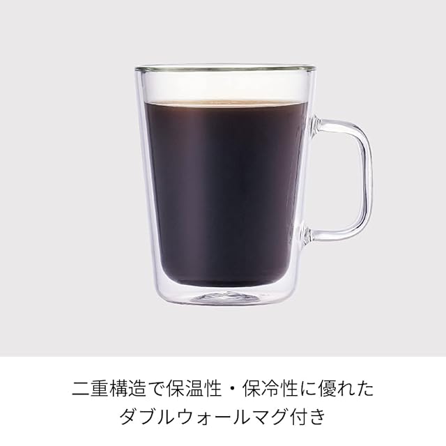 ✅ダブルウォールマグ付属 熱々のホットコーヒーはもちろん、急冷のアイスコーヒーも楽しめる耐熱ガラス製[ダブルウォールマグ]が付属。二重構造で優れた保温・保冷効果があります。 ※職人による手作りのため、大きさや重さ、形に若干の個体差があります。 ※[ソロカフェ プラス]本体に1個付属しています。