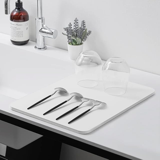 アンドエヌイー(&NE) ラバストーンドライボード LavaStone ホワイト 幅40cm×奥行30cm×高さ1cm 吸水マット 水切り 食器乾燥 速乾 天然素材 溶岩石 吸水 食器置き 自然素材 NEO-218-WH