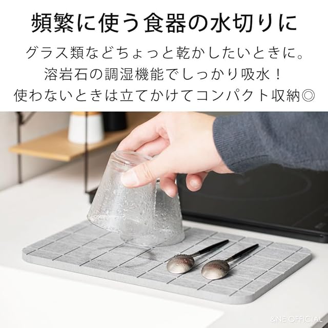 アンドエヌイー(&NE) ラバストーンドライボード Lattice LavaStone グレー 幅29.2cm×奥行19.2×厚さ1cm 吸水マット 洗い物 食器 ハード 小さめ ノンアスベスト 抗菌 消臭 速乾 吸水 溶岩石 NEO-236-GY