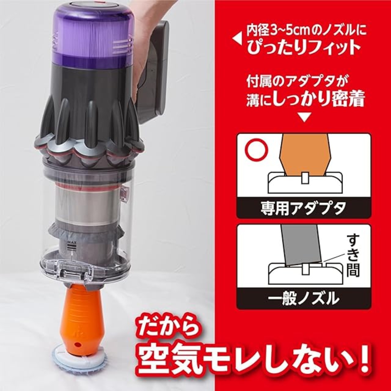 【スピード圧縮可能な専用アダプタ付き】専用アダプタがバルブにぴったり密着し、空気モレを防ぎながらスピーディーに圧縮。ストレスなく圧縮作業が完了します。スティックタイプ、キャニスタータイプ、吸引口円形タイプの掃除機に対応しています。