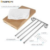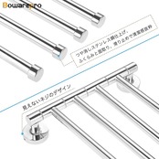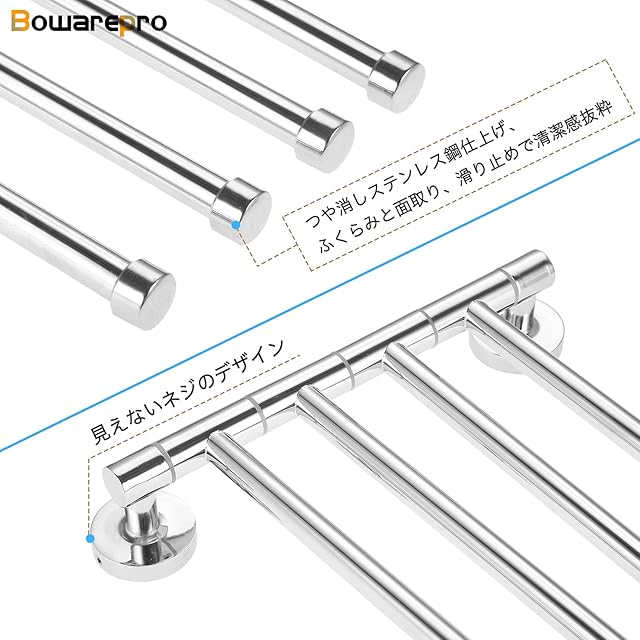 商品名:Bowarepro タオルハンガー タオル掛け スイングアーム ステンレス 洗面所 キッチン トイレ タオルバー フック付き 180°回転壁掛け 省スペース(サスペンションロッド 4本)