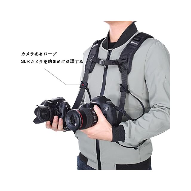 【2台までのカメラ運ぶ可能】同時に2台のカメラを持ち運ぶことができます。クイックリリースデュアルショルダーカメラストラップハーネスは、2本のシングルストラップにもセパレートすることができます