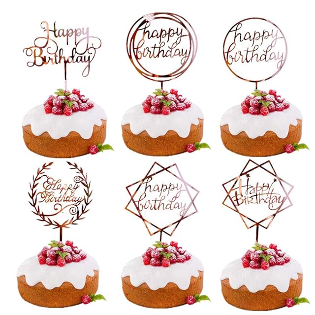 Kingsie ケーキトッパー 6枚セット ケーキ デコレーション Happy Birthday 誕生日 バースデー トッパーセット ピンクゴールド ケーキ飾り パーティー 写真撮影