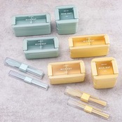 サイズ:幅18.2×奥行7.4×高さ8.4cm、容量:680ml、重量:230g、材質:本体・中仕切・中皿/ポリプロピレン、フタ・箸/AS樹脂、ロック/ABS樹脂、パッキン/熱可塑性エラストマー、電子レンジの使用:可、食洗機の使用:可、生産国:ベトナム
