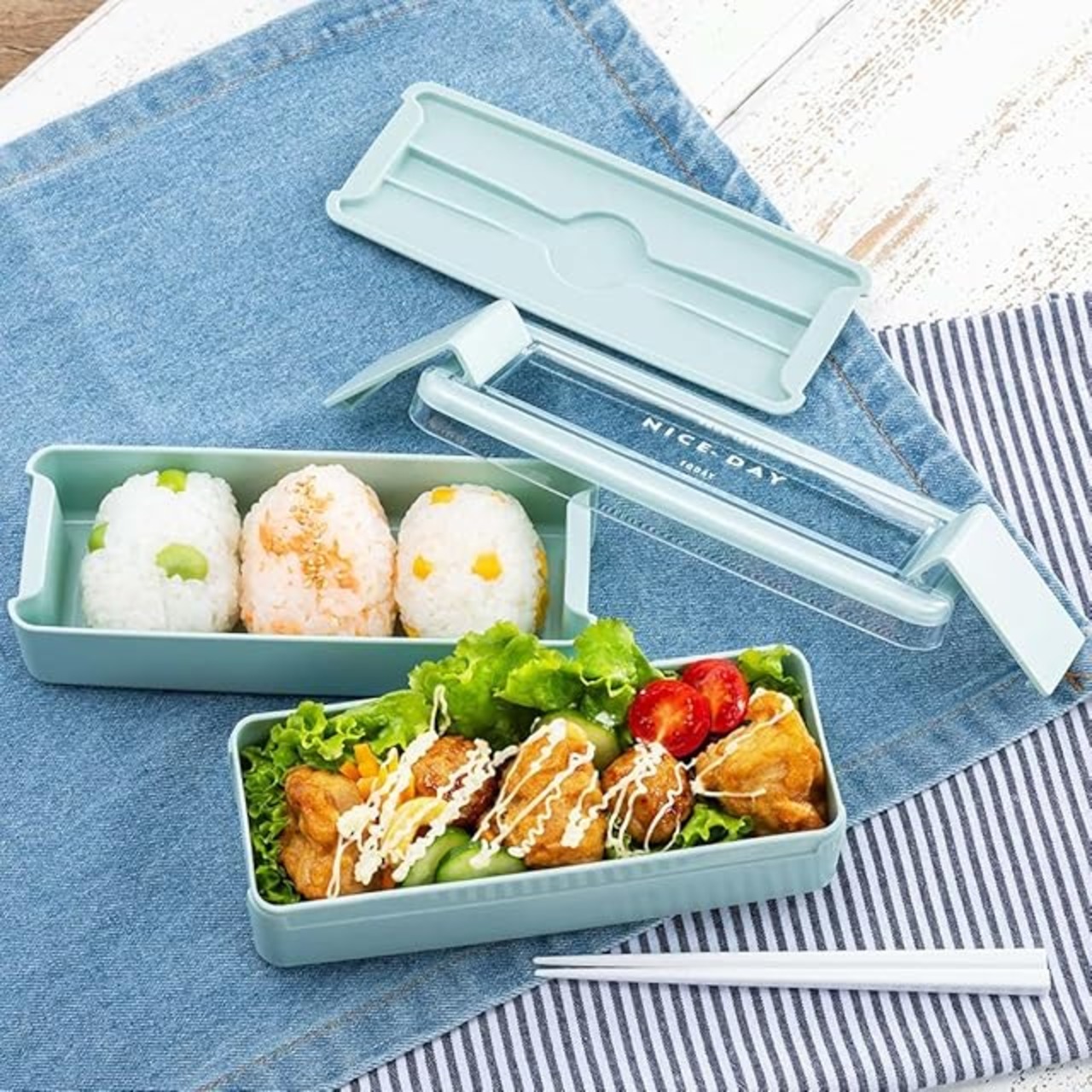 お手入れ簡単な弁当箱2段680ml、15cm箸付き。