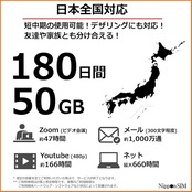 プリペイドsim 日本 simカード 180日間 50GB sim ドコモ通信網 docomo データ通信専用 4G LTE 3in1 (標準/マイクロ/ナノ) simフリー 端末のみ対応 多言語マニュアル付【Nippon SIM for Japan】