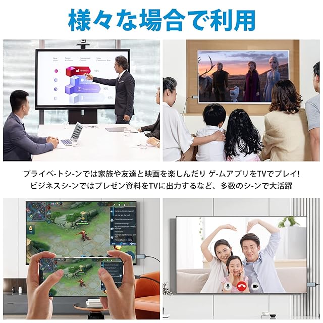 【ワンタッチ接続で大画面体験】iPhone 16/15をTV・プロジェクターに直接接続!追加のHDMIケーブル不要で、最大4K解像度*の高精細画質とクリアな音声を同期出力。◆ 2mの長さ&耐久設計|会議プレゼン・ゲーム・動画鑑賞に最適。◆ 最新iOS完全対応|アプリ不要のプラグアンドプレイ