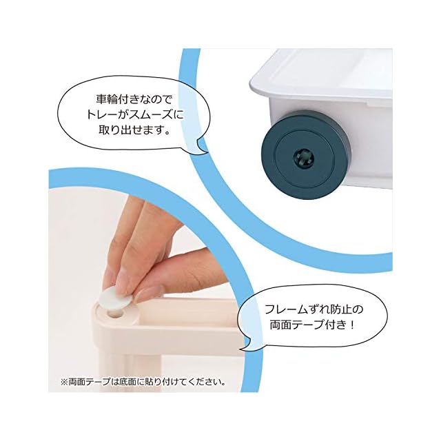 材質 / トレー・キャップ:ポリプロピレン、車輪:ポリアセタール、レール・上下フレーム:ABS樹脂、パイプ:スチール(ポリプロピレンコーティング)