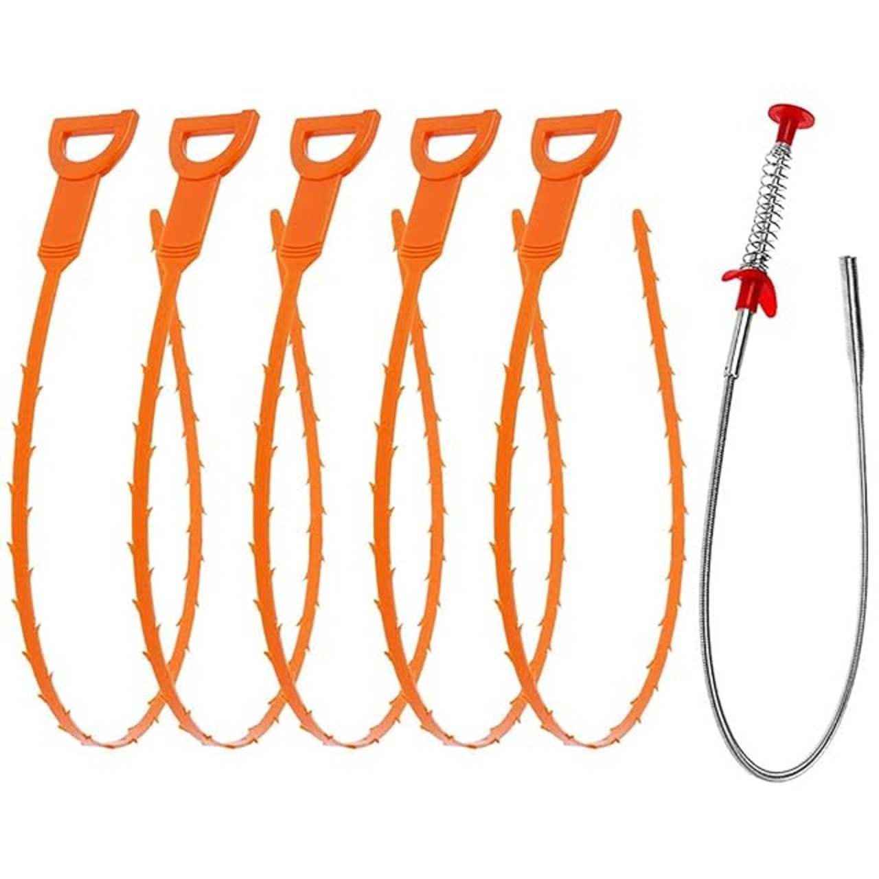 商品名:SHULLIN 6個セット パイプクリーナー 下水管 ヘアキャッチャー クリーニングブラシ 排水蛇クリーナー パイプク リーナー 排水溝 ワイヤー マジックハンド パイプ 排水溝 ワイヤーブラシ 排水溝詰まり除去 排水管 ブラシ 排水管掃除 髪の毛 汚れ つまり など掃除 (1ステンレス+5プラスチック)