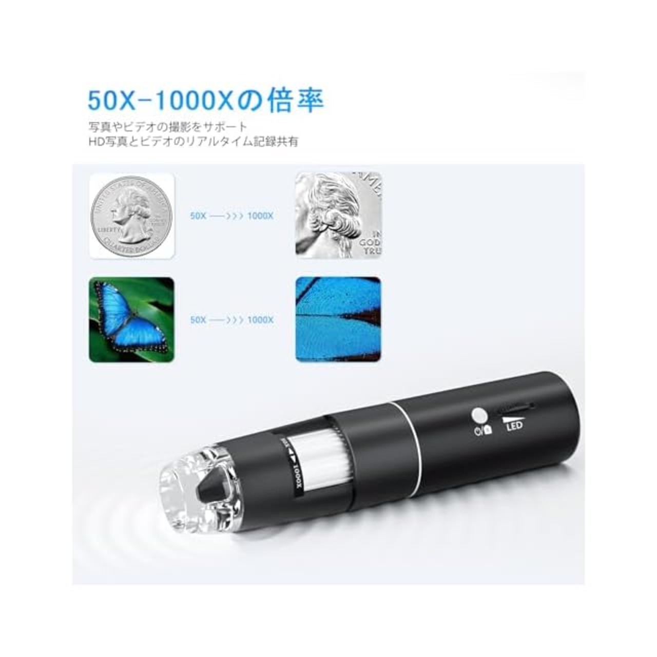 商品名:SKYBASIC Wifi デジタル顕微鏡 2MP 50-1000倍電子顕微鏡 拡大鏡 ポータブルハンドヘルド顕微鏡カメラマイクロスコープ 、8 LED 、iPhone、Android、iPad、Windows、Macコンピューターと互換性あり、肌チェック/回路基板修理/生物観察/楽しいホリデーギフト