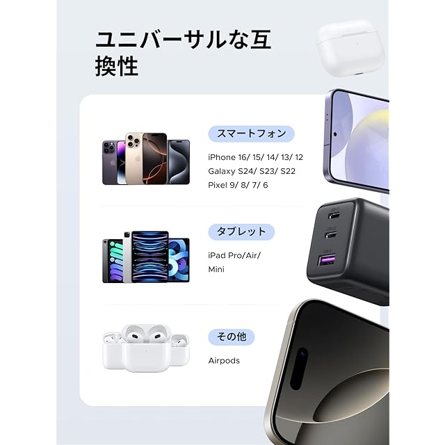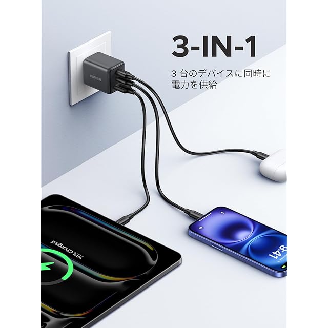 商品名:UGREEN 充電器 type-c 30W (2*USB-C+1*USB-A) 【PSE技術基準適合/PD3.0対応/30W急速充電/コンパクト】 GaN アダプター iphone17/16/15/14/13/iPad/GalaxyS25-S10/Google Pixel/AirPodsなどに対応 USB-CtoC ケーブル