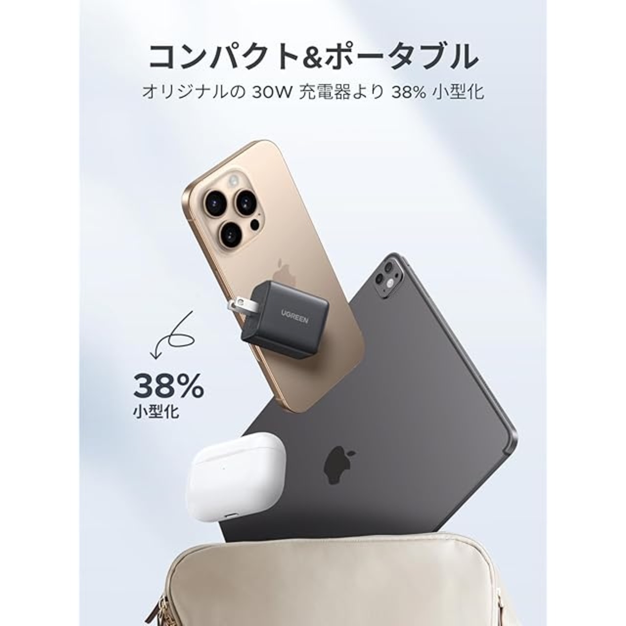 UGREEN 充電器 type-c 30W (2*USB-C+1*USB-A) 【PSE技術基準適合/PD3.0対応/30W急速充電/コンパクト】 GaN アダプター iphone17/16/15/14/13/iPad/GalaxyS25-S10/Google Pixel/AirPodsなどに対応