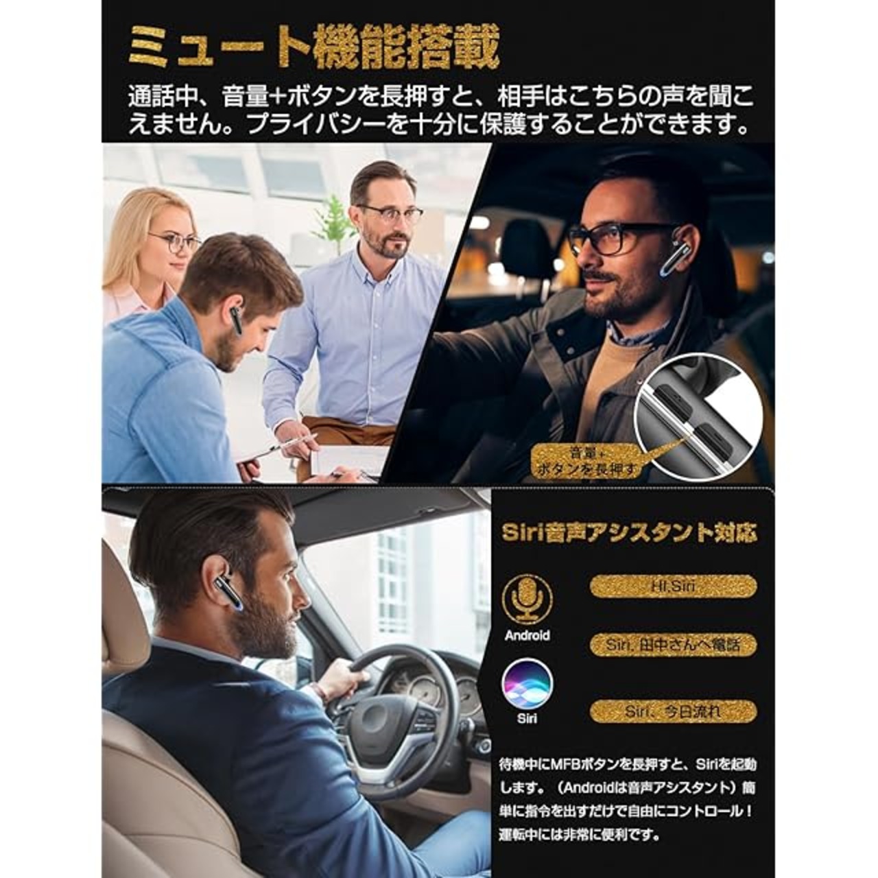 【ハンズフリー通話専用マイク搭載・ミュート機能】弊社のBluetoothヘッドセットは単一指向性マイクとCVC8.0ノイズキャンセリング機能が搭載により、正確に声を拾い、周囲からのノイズをブロックし、よりクリアな通話を実現でき、騒がしい場所でも相手にクリアな音声を届けます。更に、マイクを口元に近づけやすくなるスティック型ですので、明瞭な音声通話を実現し、テレワークやWeb会議にも役立ちます。お客様のプライバシーを最大限度に保護するために、ミュート機能も搭載されており、通話中、「⾳量-ボタン」を⻑押すと、こちらの声は相手に聞こえなくなるため、会議中など、機密情報を扱う場合に助かります。Siri機能にも対応しているので、運転中に音声コントロールを起動できます。オンライン会議、運転や家事、荷物配達などの忙しい場合から両手を解放できます。