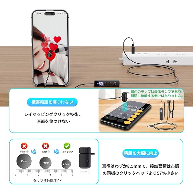 商品名:Double Q G10 自動タップ機 スマホ連打装置 いいね 連打機 オートタップ Tiktok タップ機 オートクリッカー 無音 117のクリック周波数レンジ USB給電式 iphone 自動 タップ ランダム周波数モードのサポート 携帯 自動タップ 各種タッチパネル機器対応 日本語説明書