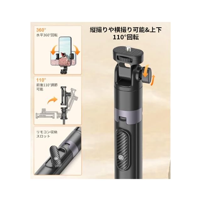 分離式ワイヤレスリモコン付き&10m遠隔撮影:このセルカ棒は遠隔リモコン付き、携帯電話に無線接続するだけで、最大10メートルの遠隔撮影が可能です。遠距離で自由に人と風景を撮ることができます。充電式リモコンだから電池交換の手間が要らず、USBCケーブルで1時間充電完了。フル充電すると20000枚以上の写真を撮れます。