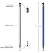 【2-in-1スタイラスペン】タブレットペン、軽量合金製、接続や充電の必要はありません、パッケージを開いて使用する準備ができて、快適な感じ、頑丈で耐久性があり、いつでもどこでもあなたのインスピレーションを簡単にキャプチャするためにそれを使用することができ、紙の上に書くようにすべてを作り、より正確な書き込み/描画/タッチ体験を与える。