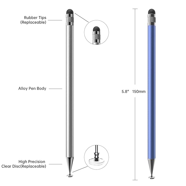 【高精度と高感度】タッチペン柔軟な透明ディスクチップを採用しており、タブレットや携帯電話に途切れた線を残すことなく、画面に柔軟にフィットし、より優れた柔軟性と精度を提供します。 ラバーチップとディスクチップで、2つの異なるタッチ体験を提供します。