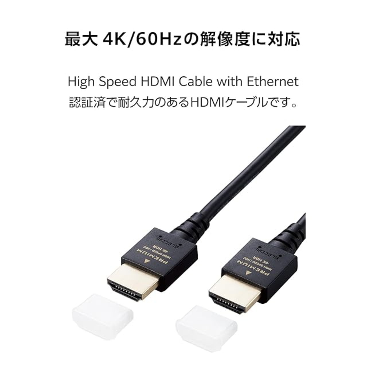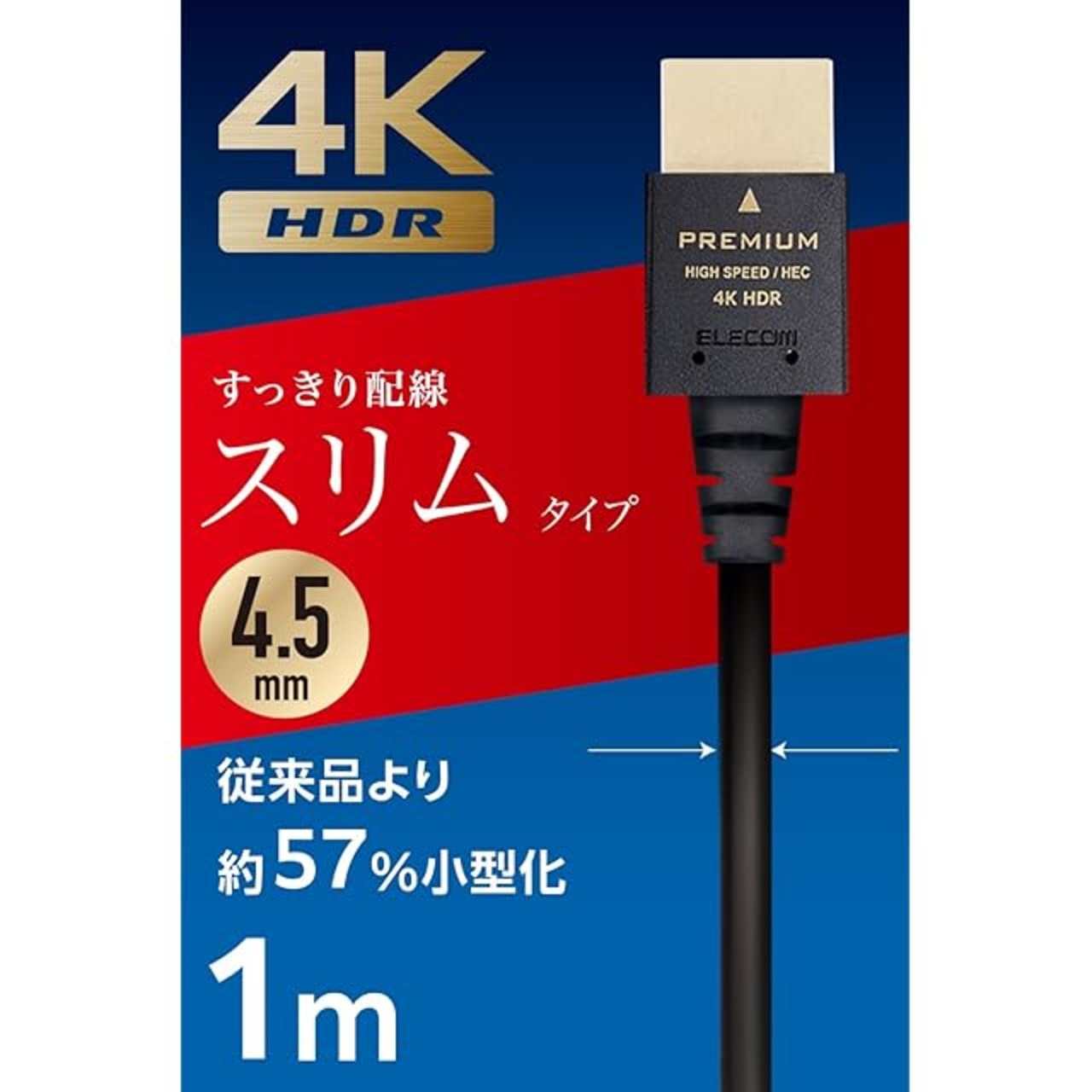 エレコム HDMI ケーブル 1m 細い プレミアム 4K2K(60Hz) 【Premium HDMI(R) Cable規格認証済み】 18Gbps テレビ・パソコン・ゲーム機などに eARC 黒 ECDH-HDPES10BK