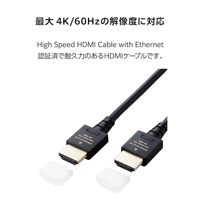 商品名:エレコム HDMI ケーブル 1m 細い プレミアム 4K2K(60Hz) 【Premium HDMI(R) Cable規格認証済み】 18Gbps テレビ・パソコン・ゲーム機などに eARC 黒 ECDH-HDPES10BK