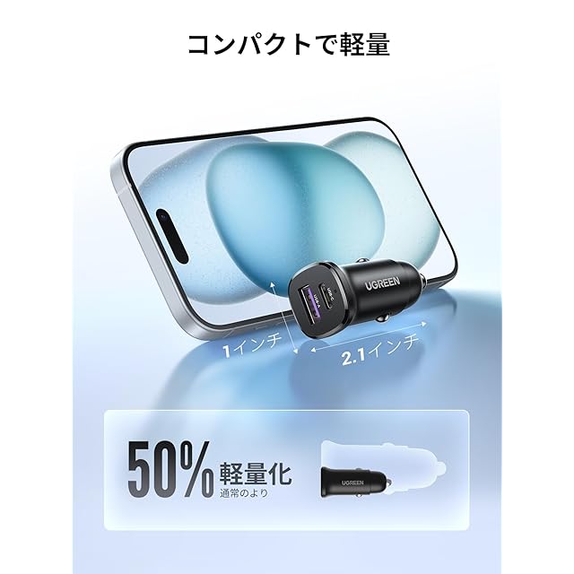 商品名:UGREEN USB C カーチャージャー 2ポート ミニ小型【PD30W+SCP22.5W 急速充電】 シガーソケット PD3.0/QC4.0/PPS対応 12V・24V車対応 車載充電器 コンパクトサイズ 軽量 耐久性 車充電器 iphone17/iPhone15/ iPhone14/ iPhone13/Xperia/Galaxy/Android/iPadなどに対応