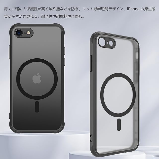 iPhone SE 第3世代 第2世代 ケース MagSafe対応 耐衝撃 半透明 iPhone8 ケース マグネット搭載 PC iPhone7カバー 軽量 薄型 マット感 人気 黄ばみなし 米軍MIL規格 ストラップホール付き ワイアレス充電対応 EUMADOVE (ブラック, iPhone se se2 se3 8 7)