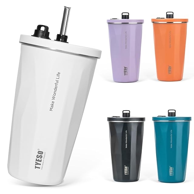 商品名:TYESO タンブラー ストロー付き ステンレス 広口 真空断熱 ホームオフィス アウトドア 多色 保温 保冷 ふた付き 600ml 大容量 女の子 男の子
