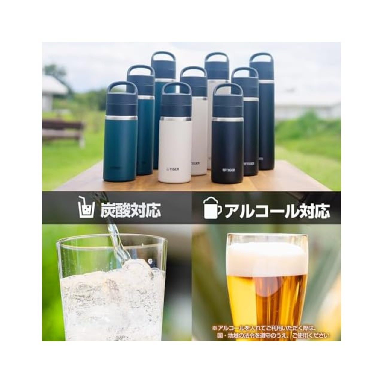 【食洗機・保温保冷対応】タイガー魔法瓶 水筒 360ml 真空断熱炭酸ボトル ステンレス ビールOK ハンドルホルダー付 持ち運び コンパクト MKB-T036WK ホワイト