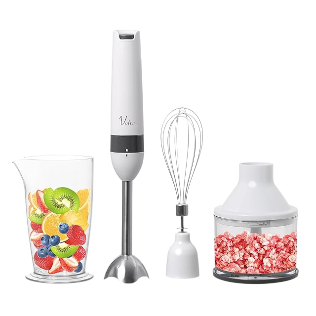 [山善] マルチ ハンドブレンダー 電動 ハンドミキサー フードプロセッサー 離乳食 スムージー 1台5役 (つぶす/混ぜる/泡立てる/刻む/砕く) 食洗機対応 Votre 軽量 ホワイト YHBA-T120(W)