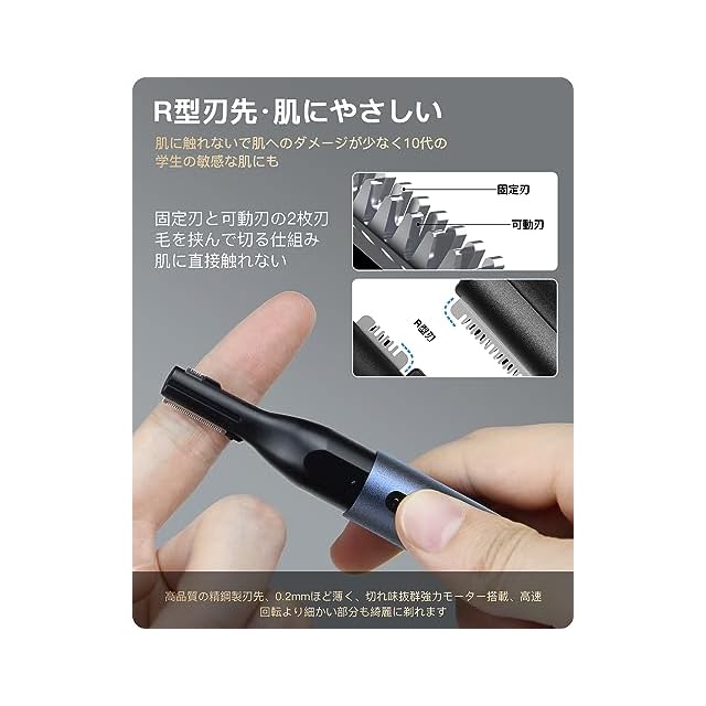 【静音設計&コンパクト仕様】眉毛そり メンズは、マッドなボディに操作しやすいスイッチを備え、手になじみ使いやすいものとなってます。サイズは12.9 × 1.85cmと超小型なので携帯にも便利です。したがって自宅だけでなく、職場や出張、旅行先でも、どこにでも持ち運びができます。また顔剃り メンズは静音設計なのでいつでも気軽にご使用できます。